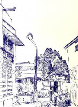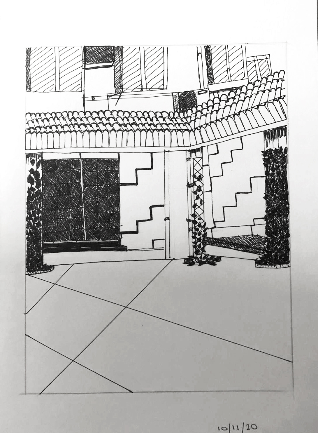 Exterior drawing is the practice of sketching the urban environment from observation. Identifying a subject/focal point, composition, values, colour, rendering techniques and exploring various styles are all a part of the exterior drawing curriculum. The practice of sketching strengthens these fundamentals and helps build the foundation to create and evocative and emotive picture.