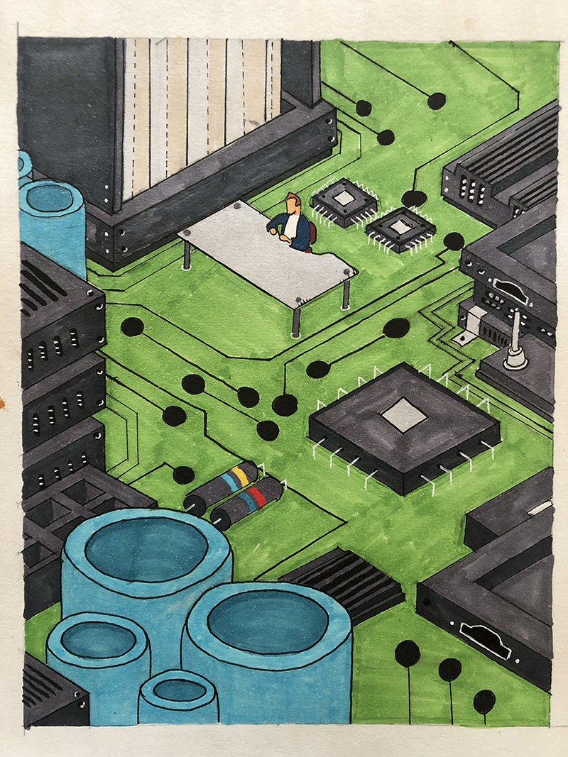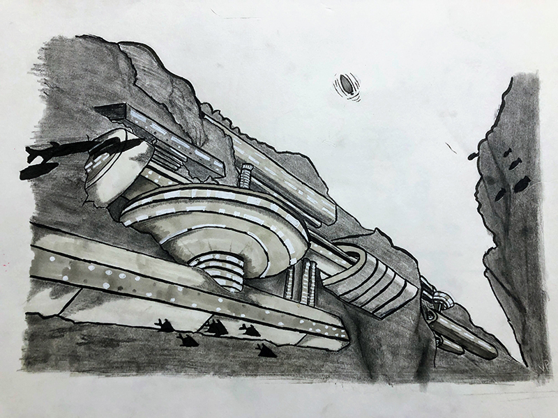The intention of the course is to equip students with tools to use in the understanding and development of perspective drawing. The students are taken through an explorative process of 1 Point Perspective and 2 Point Perspective in depth and are exposed briefly to Isometrics, Orthographics, 3 Point Perspective and Shadows.