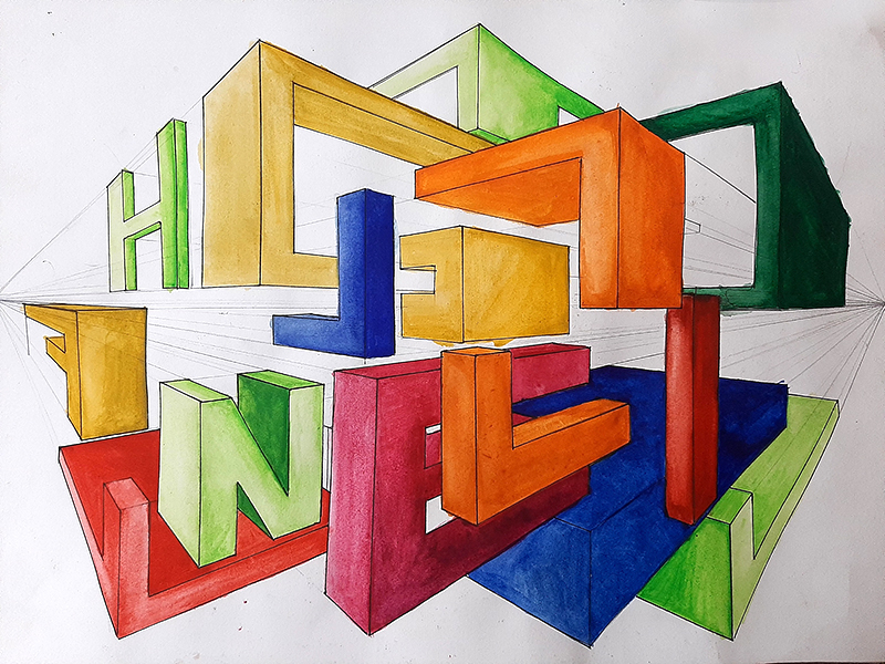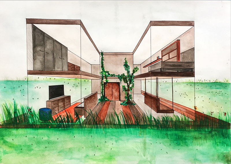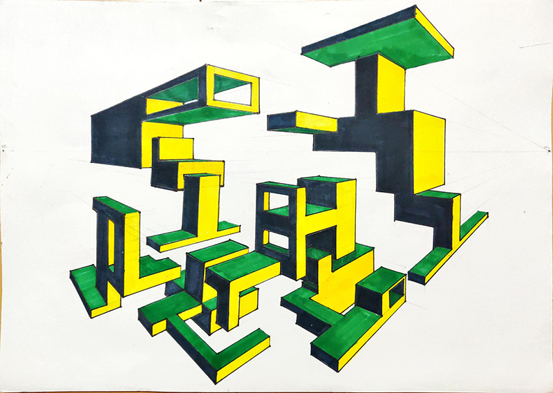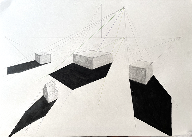 PERSPECTIVE: The intention of the course is to equip students with tools to use in the understanding and development of perspective drawing. The students are taken through an explorative process of 1 Point Perspective and 2 Point Perspective in depth and are exposed briefly to Isometrics, Orthographics, 3 Point Perspective and Shadows.